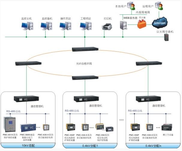 (2)負荷多而且分散,可采用光纖自愈環網方式,網絡結構穩定。